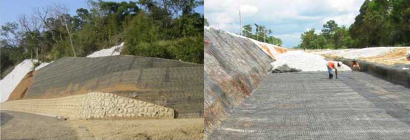 การนำ Geogrid (ตาข่ายเสริมกำลังดิน) มาประยุกต์ใช้เพื่อช่วยเพิ่มความสามารถในการรับแรงเฉือนในดินอ่อน ทำให้ดินมีเสถียรภาพมากขึ้น อีกทั้งยังช่วยในด้านการเพิ่มความสามารถในการรับแรงของดิน ดังนั้น Geogrid จึงได้ถูกนำมาใช้ในการเสริมกำลังของดินในการก่อสร้างอื่นๆด้วย